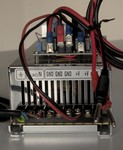 The subwoofer amp is based on a heavily modded BTL configured TPA3255 board. The opamps have been removed and replaced with a balanced input. A clipping indicator has been provided as well. It is powered by a Joepie China switchmode power supply (48 V/8.3 A).