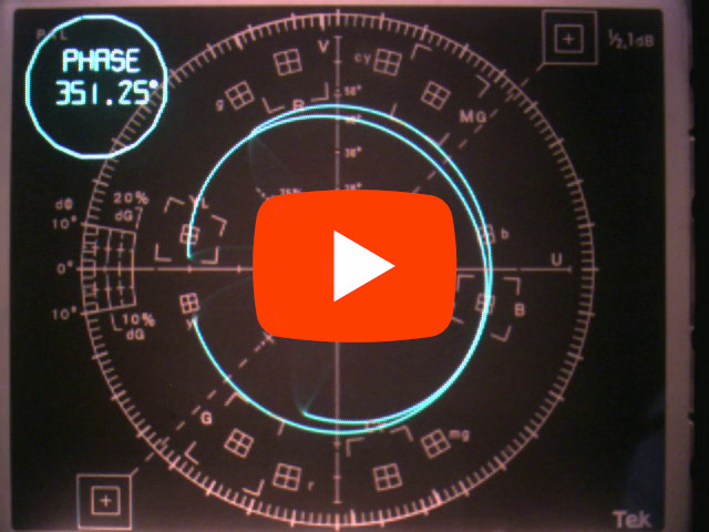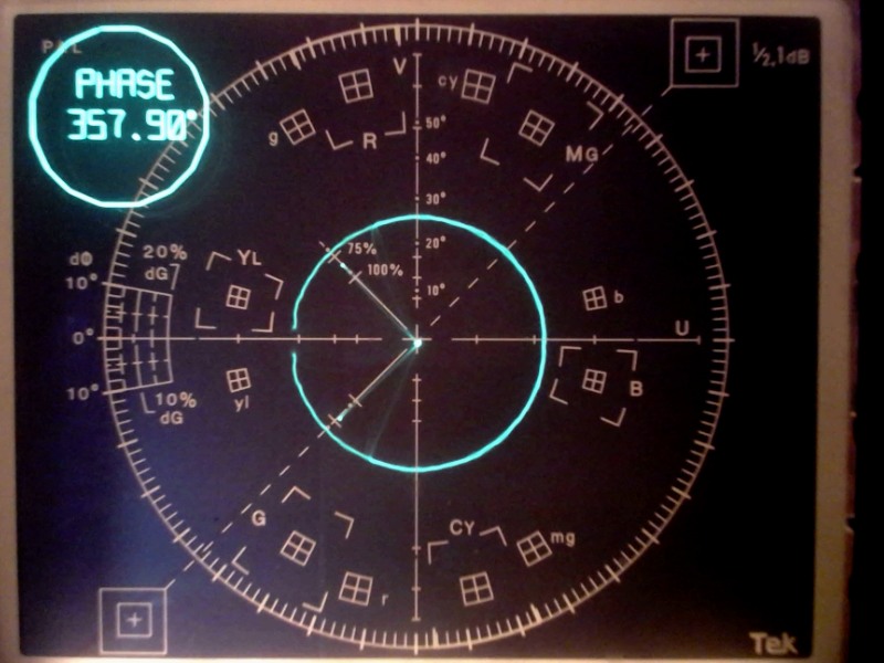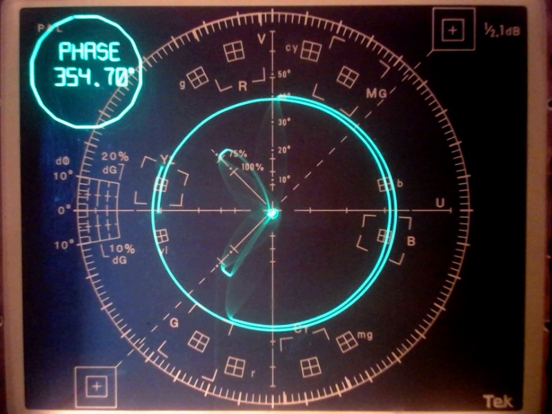 This is a screen capture with a USB video dongle. I immediately hooked up my wonderful Tektronix 1781 vectorscope: