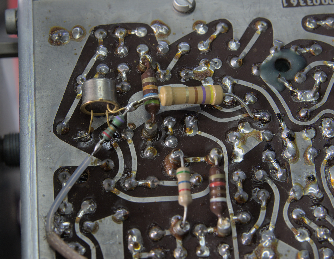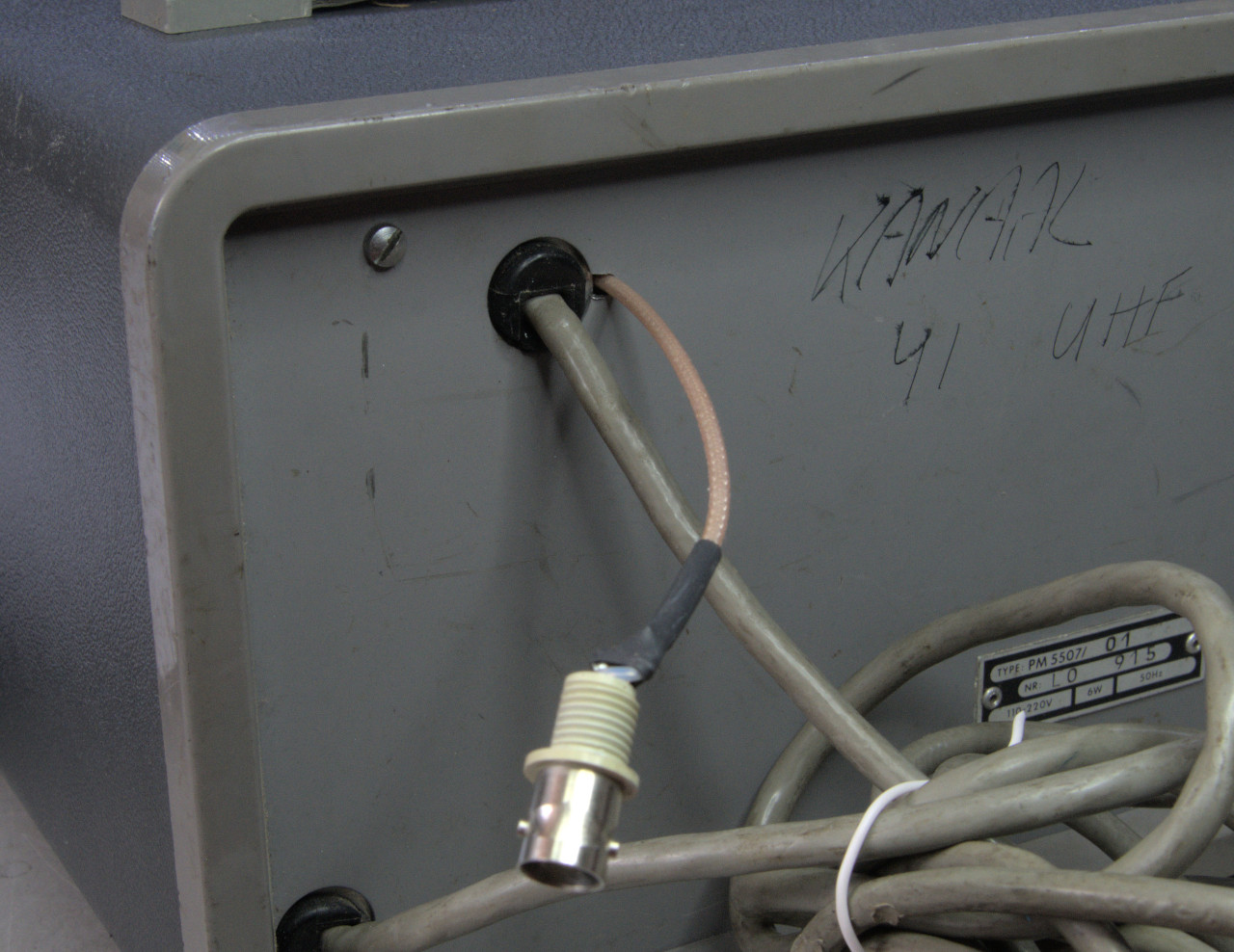 It needed some work, the cover of the frequency dial is gone and needs recreation, the feet were completely worn through and the sharp metal brackets poked through the degenerated rubber. I put new feet under it, kludged a video output on it: